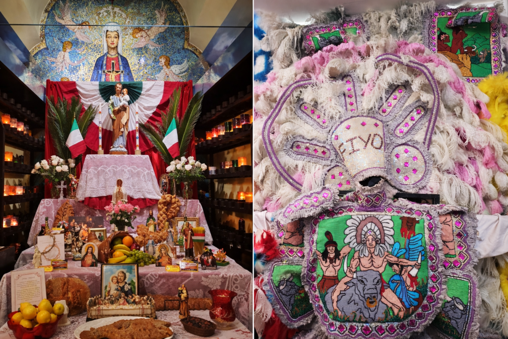 What struck me most as I experienced these traditions was how they came from different cultural roots, yet existed side by side. Sicilian Catholic devotion, African spiritual traditions, Native American influences.